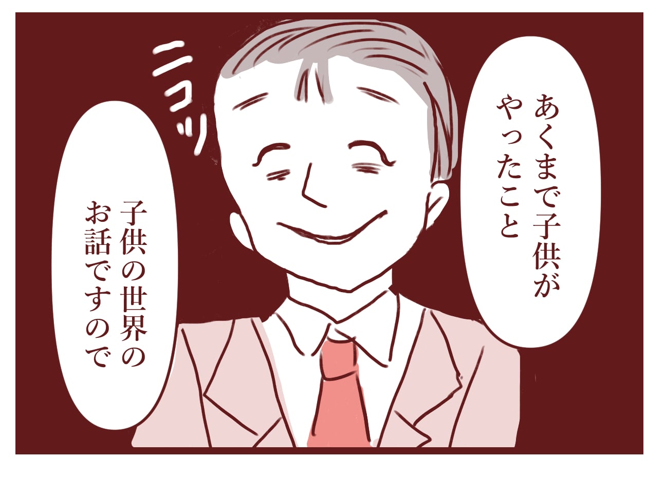 「子供同士の事」=「子供がした事ですから〜ぁ♪」と、笑顔で済まそうとしてるんだ。